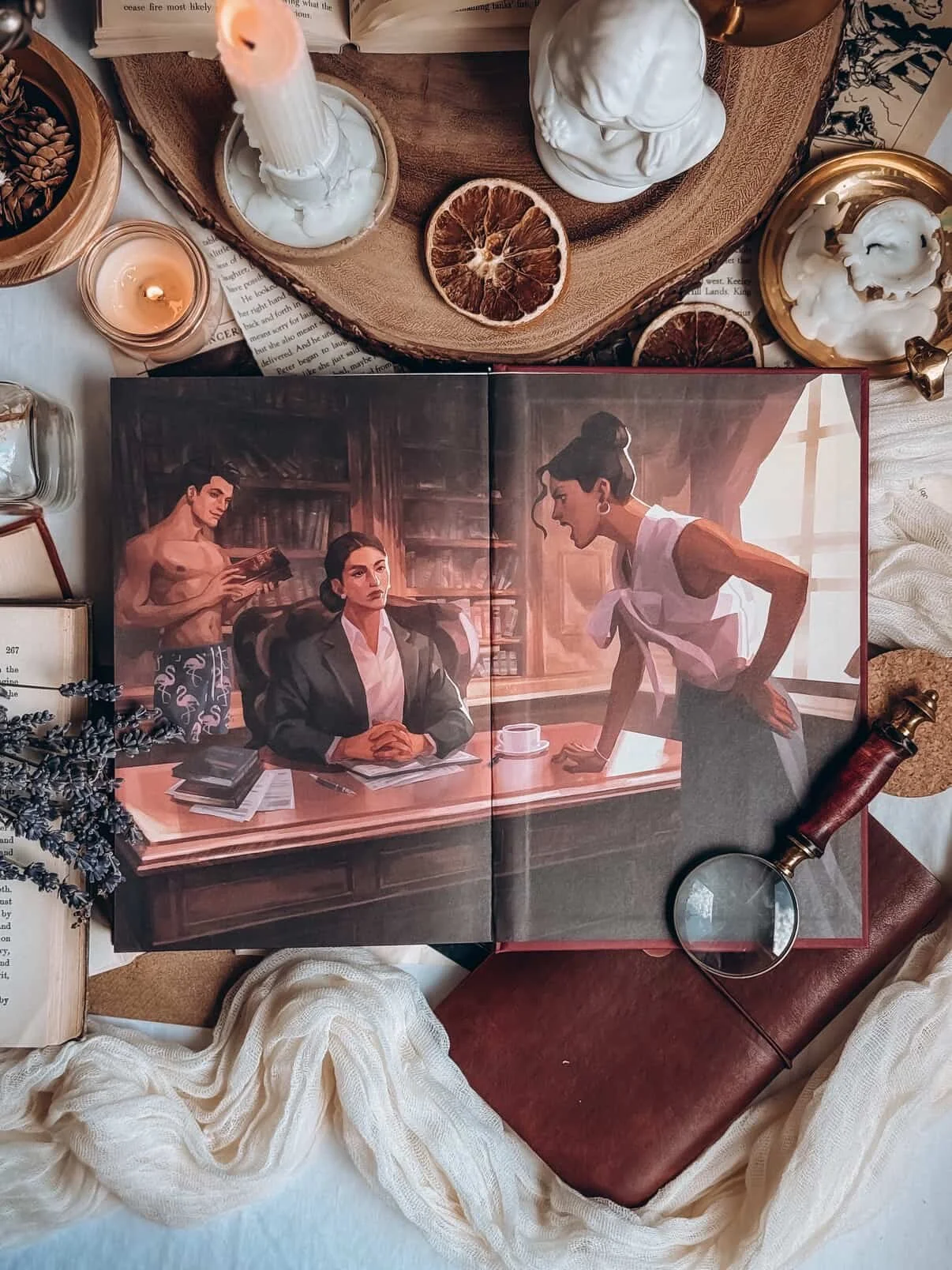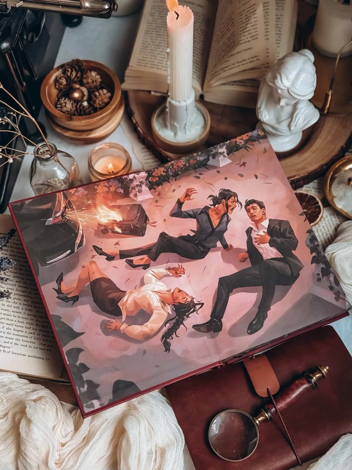 Illustrated dust jackets, endpapers, and tip-ins for limited edition books by various NYT-bestselling authors, such as V. E. Schwab, Olivie Blake, and Marissa Meyer. Books sold online or via monthly subscription.